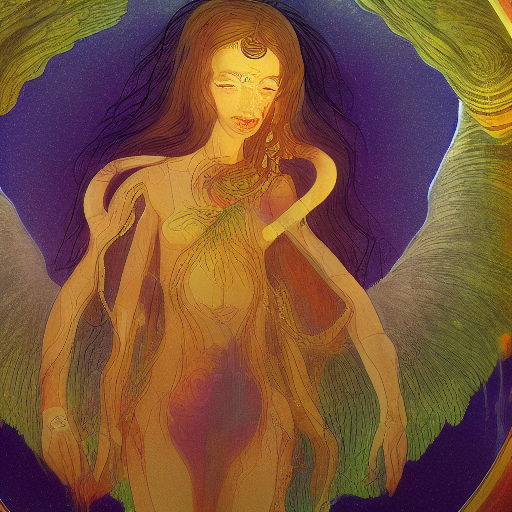 Akashvani (term) background with ,Oligomers,Samkhya spot on ,Female , highly detailed
